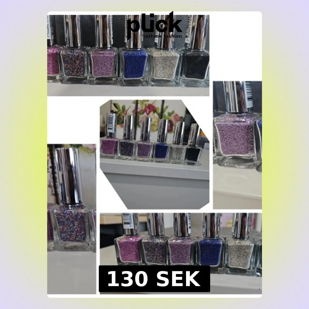 Set med sex flaskor . Olika färger med små pärlor. Färgerna inkluderar lila, blå, rosa, svart, silver och flerfärgad . Kaviar-pärlor, utan hål. Små, dekorationspärlor, liknande strössel som används vid scrapbooking, korttillverkning, lerfigurer, tavel-konst och vid nagel-smyckning. OBS! Ej ätbara! 130kr för alla eller 25kr st. Helt nya! Sammanfraktar gärna.
