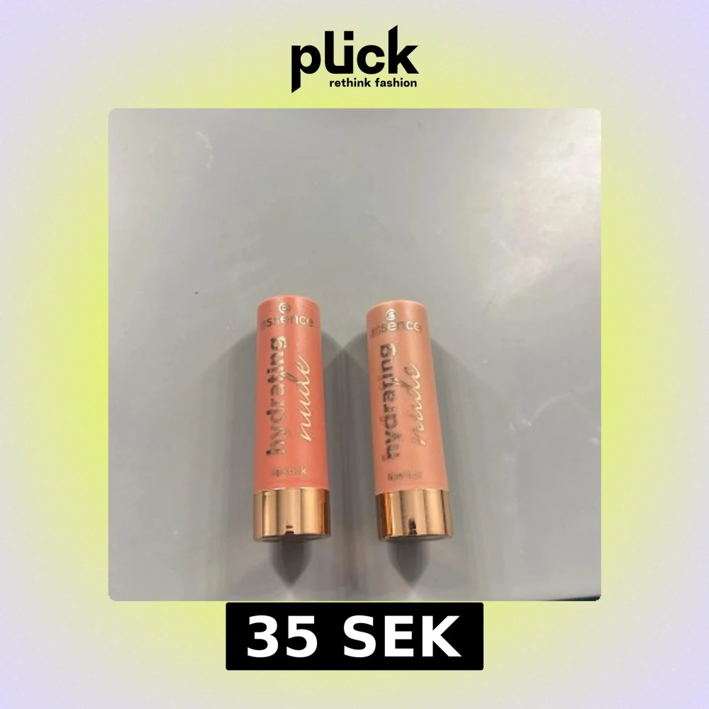 Två läppstift från Essence i serien Hydrating Nude. Nyanserna är 302 'Heavenly' och 303 'Delicate'. De har en krämig konsistens och ger en naturlig look. Förpackningen är elegant med en roséguldig hylsa. Det är ungefär hälften kvar i båda. Nypris är 35kr styck