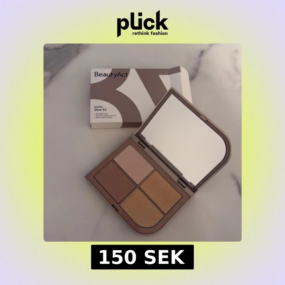 Glow Kit från BeautyAct med fyra skimrande puder-highlighters i olika nyanser: champagne, guld, bronzigt och ljusbeige. Snyggt kompakt fodral med spegel, perfekt för att skapa glow och highlighta ansiktet. Mix & match-färger för personlig look.