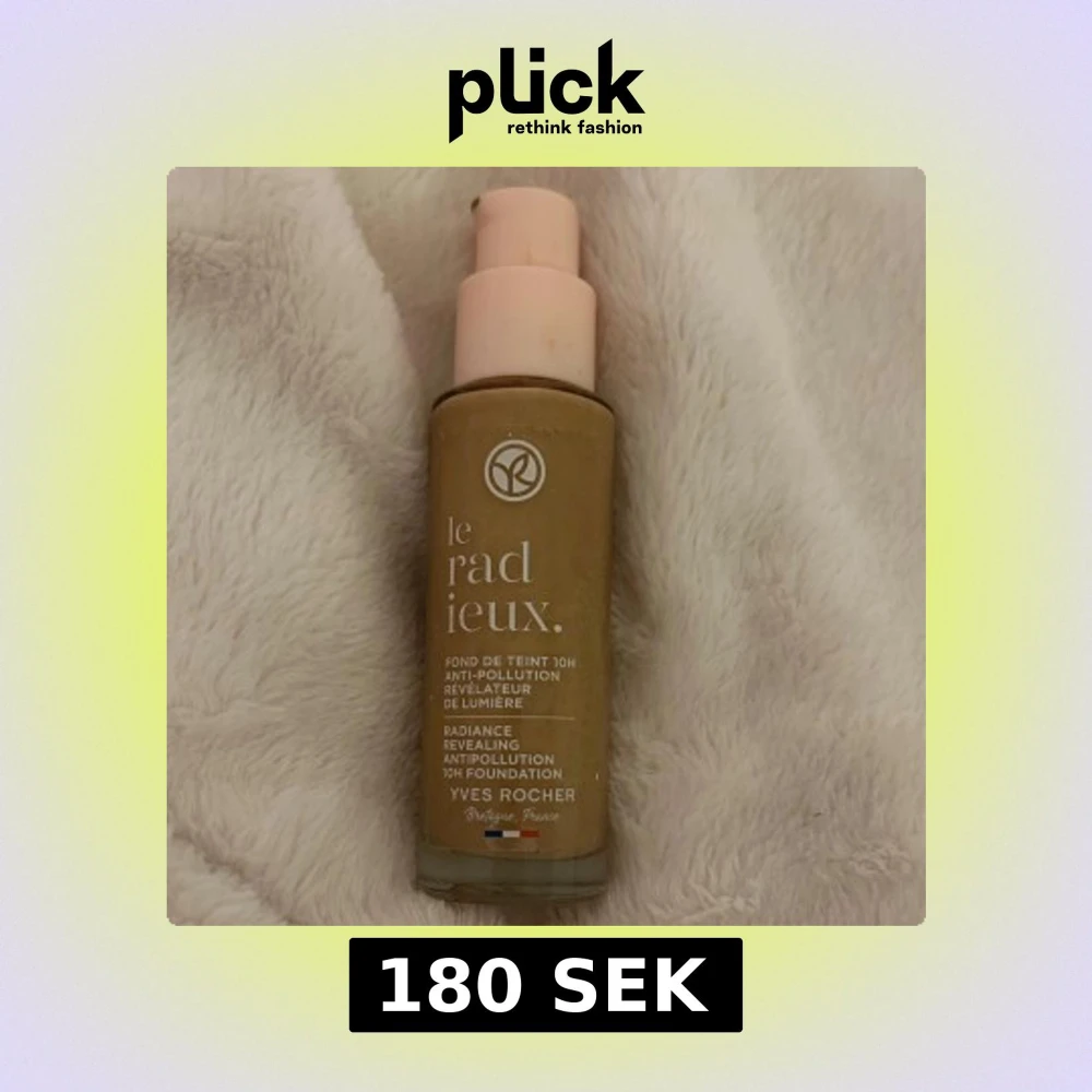 Radiancew Revealing Antipollution 10H Foundation från Yves Rocher. Denna foundation har en ljusbeige nyans och kommer i en praktisk pumpflaska. Perfekt för en jämn och strålande hudton. Använt fåtals gånger.