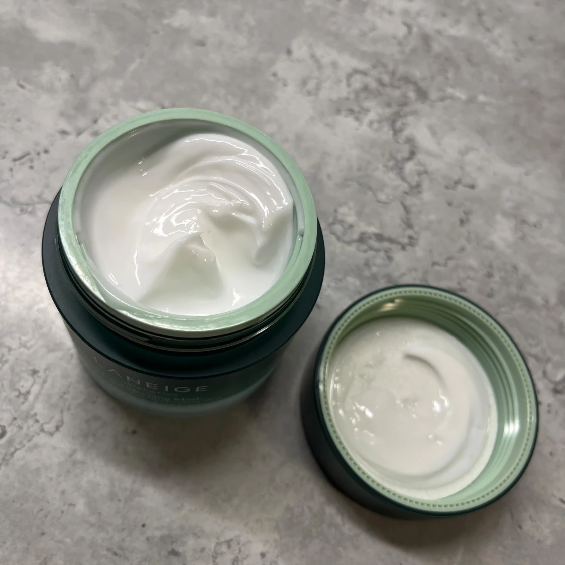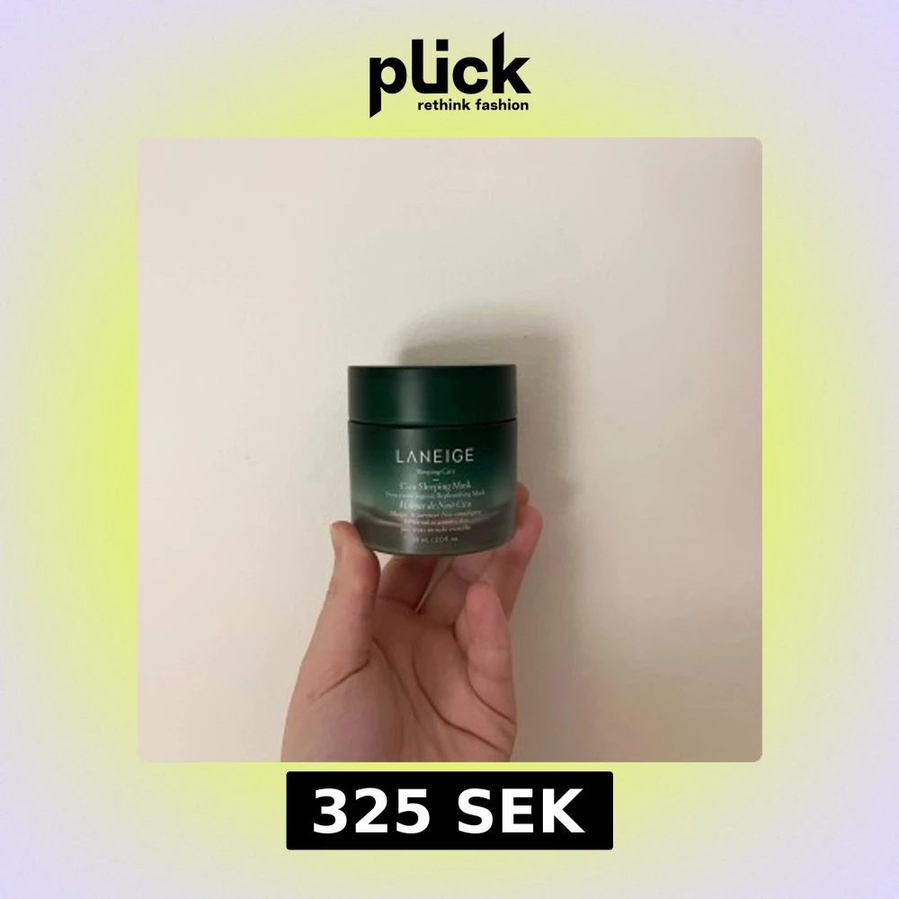 Laneige Cica Sleeping Mask i en snygg grön glasburk med svart lock. Innehåller 60 ml återfuktande och lugnande nattmask med krämig vit konsistens. Perfekt för dig som vill boosta huden med extra fukt och vård under natten. Väldigt lite använd. Burken har gått sönder lite undertill, se sista bilden men ingenting som påverkar funktionen.
