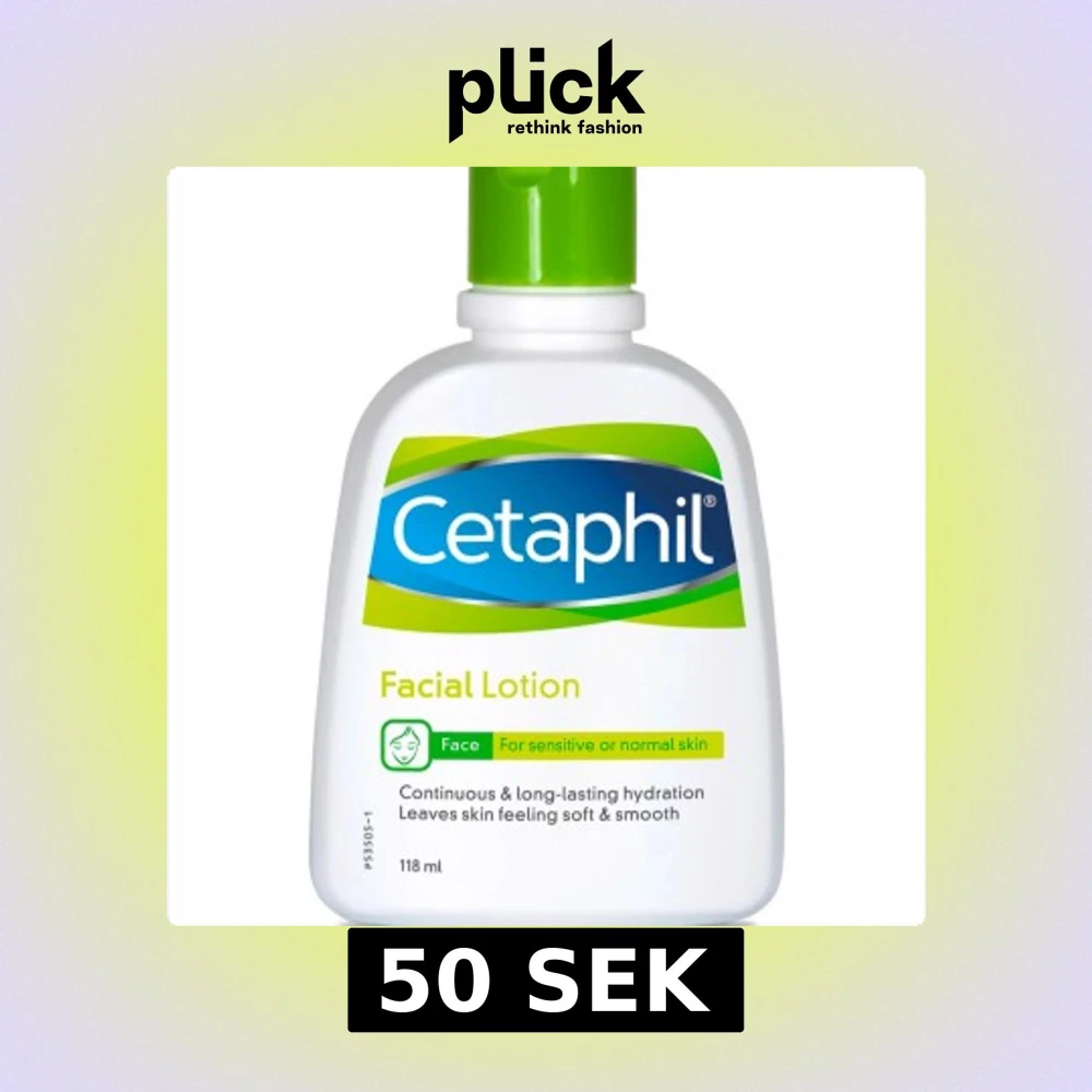 Cetaphil Facial Lotion är en ansiktskräm för känslig eller normal hud. Kommer i en vit plastflaska med grön pump och blå-grön etikett. Ger långvarig återfuktning och gör huden mjuk och smidig. Perfekt för dig som vill ha en enkel och skonsam hudvård. Finns cirka 70% kvar i burken.