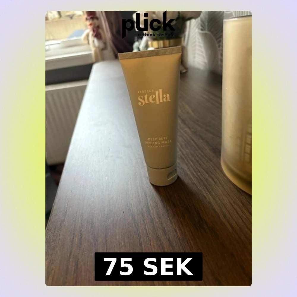 En stilren beige tub med Rebecca Stella Deep Buff Peeling Mask, innehåller AHA/BHA och kaolin för en fräsch och mjuk hud. Testad en gång köpt på Lyko