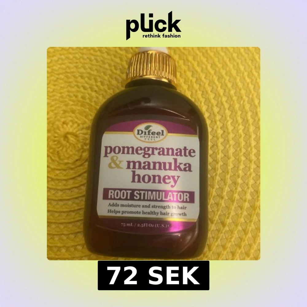 En hårprodukt med granatäpple och manukahonung som stimulerar hårbotten och stärker hårrötterna. Kommer i en brun plastflaska med guldlock och rymmer 73 ml. Innehåller inga parabener, alkohol eller mineralolja.