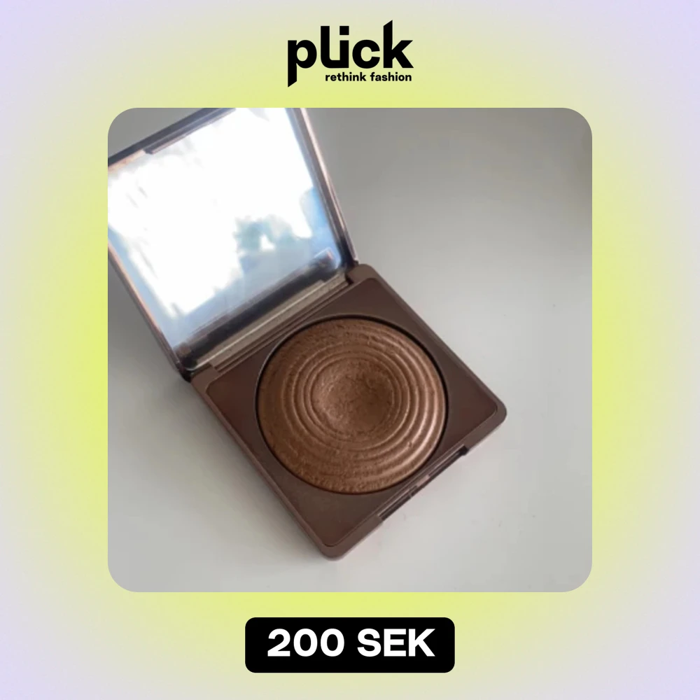 CAIA highlighter i guldig ton - Säljer en CAIA highlighter i en lyxig, guldig metallisk dosa med spegel. Pudret har en skimrande champagnefärg och är pressat i ett snyggt cirkelmönster. Perfekt för att ge glow till ansiktet och highlighta kindbenen. Köpt av en tjej på Plick för 200kr med frakt! Säljs då jag inte riktigt tyckte om highlightern på just mig och har endast använt den ca 2-3 gånger efter säljaren. Sista bild är lånad av tjejen jag köpte highlighter från!🥰Pris kan diskuteras! (Tar ej emot bud under 150kr)