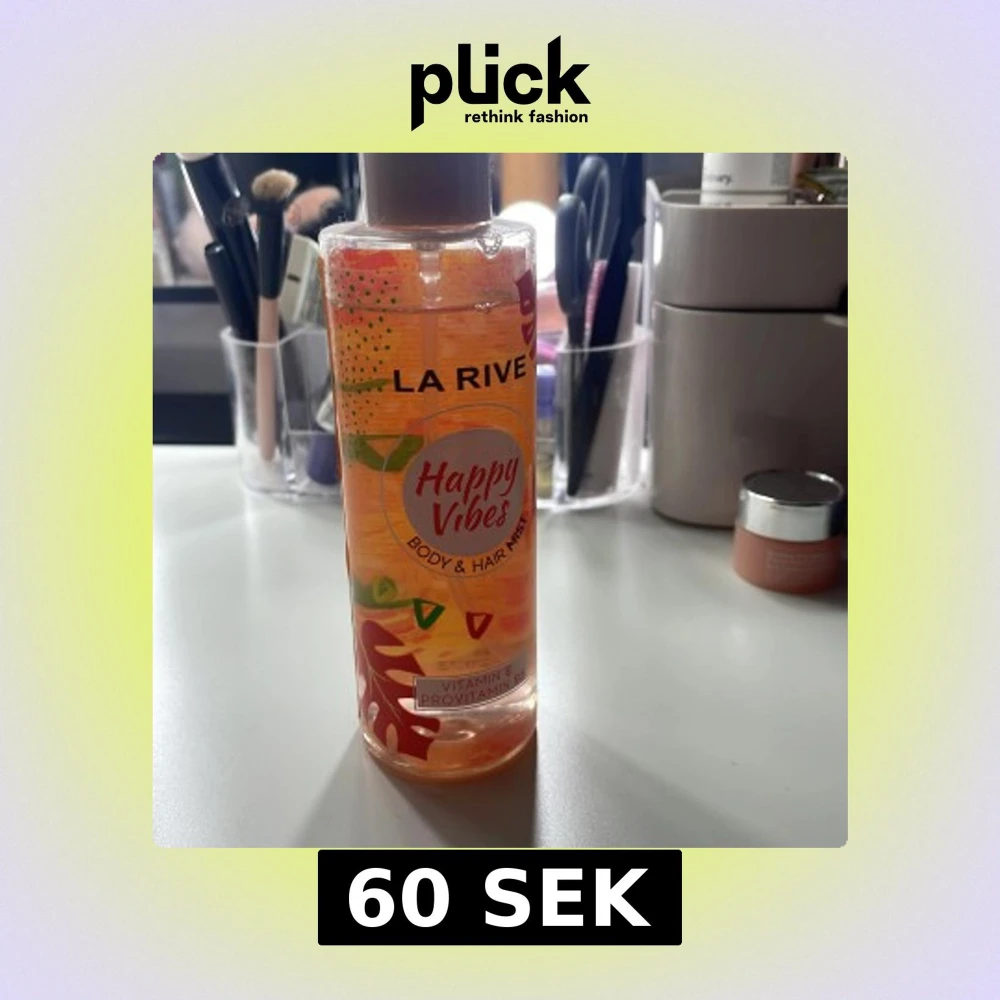 En fräsch body & hair mist från La Rive med namnet Happy Vibes. Flaskan är genomskinlig med färgglada detaljer och innehåller vitamin E och provitamin B5. Perfekt för att ge både hår och kropp en uppfriskande doft.
