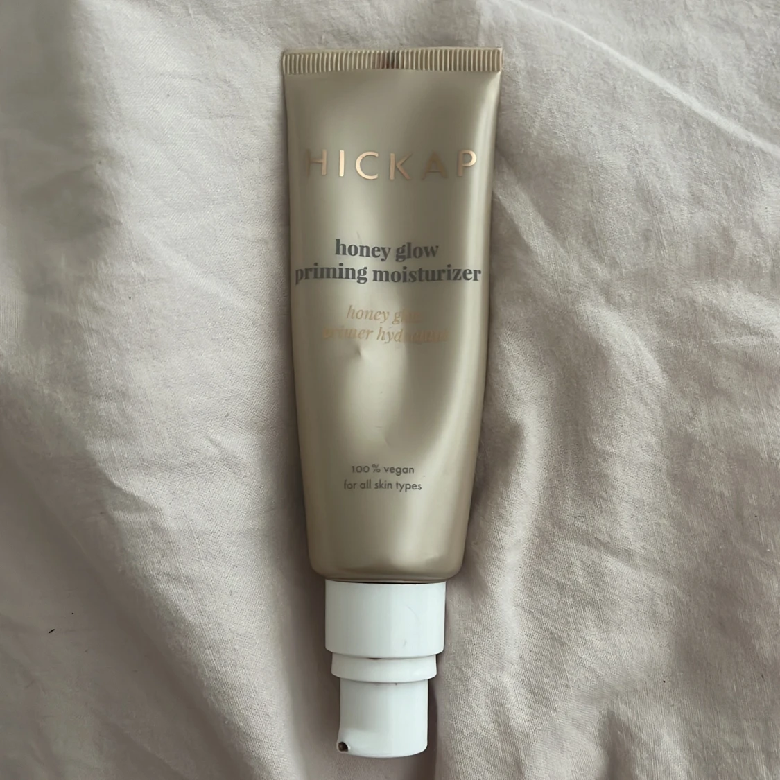 Honey Glow Priming Moisturizer från Hickap är en vegansk primer i en lyxig guldig tub med pump. Den ger glow och återfuktar huden, perfekt som bas innan smink. Passar alla hudtyper och innehåller ingredienser som ger lyster och mjuk känsla.