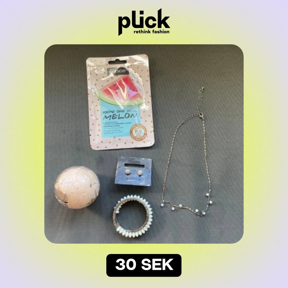 Badbomb ansiktsmask örhängen armband och halsband i ett kit halsbandet är 40 cm långt