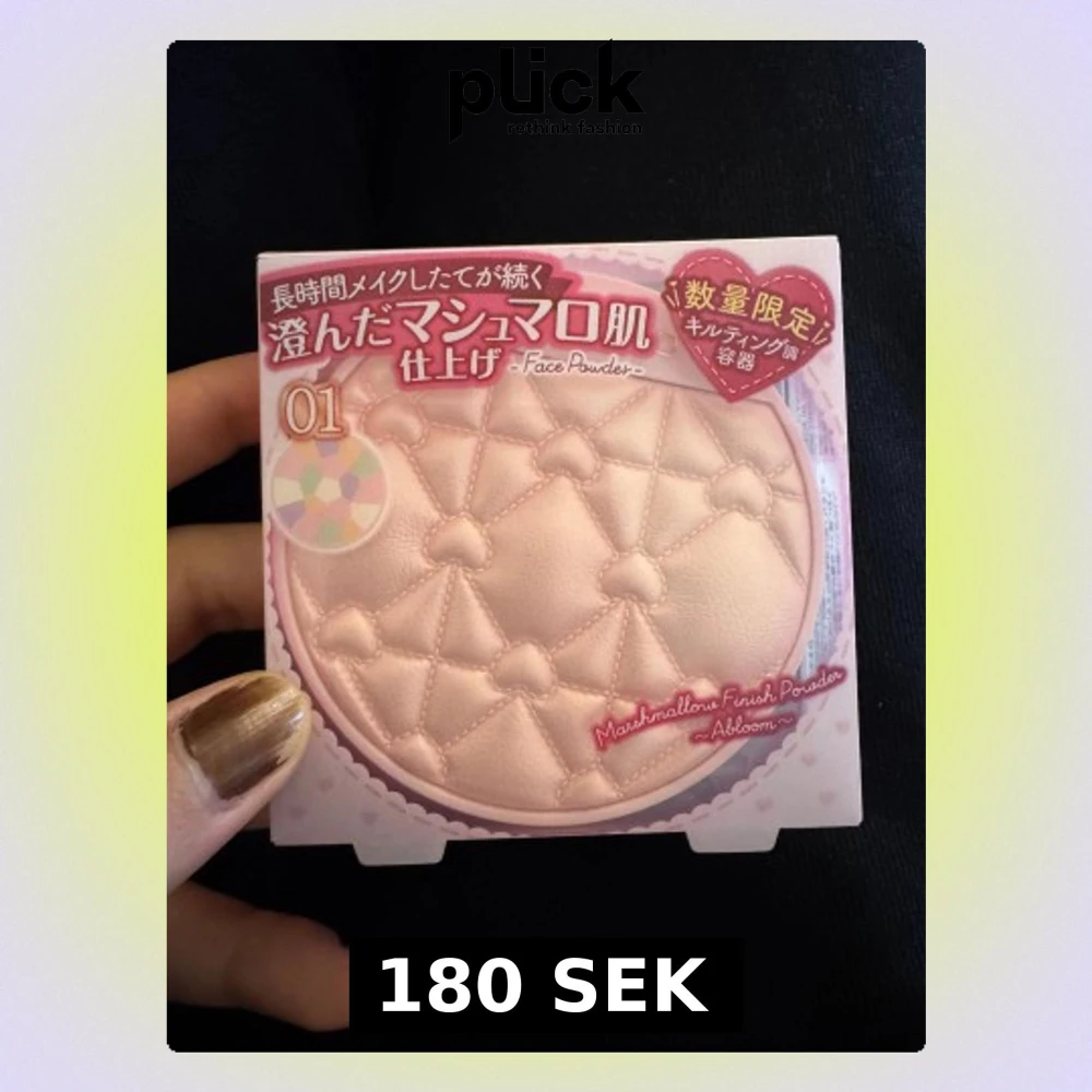 Söt ansiktspuder från Canmake i limited edition, Marshmallow Finish Powder Abloom 01. Kommer i en quiltad rosa förpackning med hjärtdetaljer. Pudret har fem färger som ger en jämn och naturlig finish, perfekt för att fixera din makeup och ge huden ett mjukt, matt utseende.
