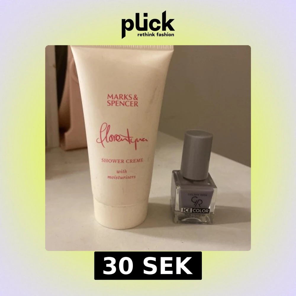 Golden Rose Ice Color nagellack i en snygg blå nyans. Kommer i en liten fyrkantig glasflaska med blått lock. Perfekt för att ge naglarna en trendig och fräsch look.Och en shower creme.