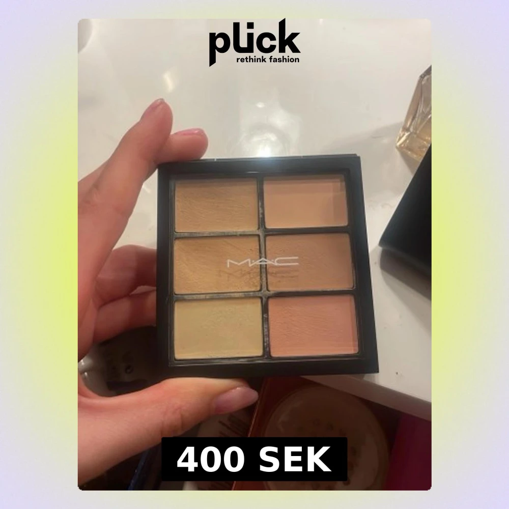 MAC concealerpalett med sex olika krämiga nyanser i beige, gul och persikotoner. Perfekt för att täcka mörka ringar, blemmor och ojämnheter. Kommer i en svart fyrkantig plastförpackning med genomskinligt lock och MAC-logga. Färgen light