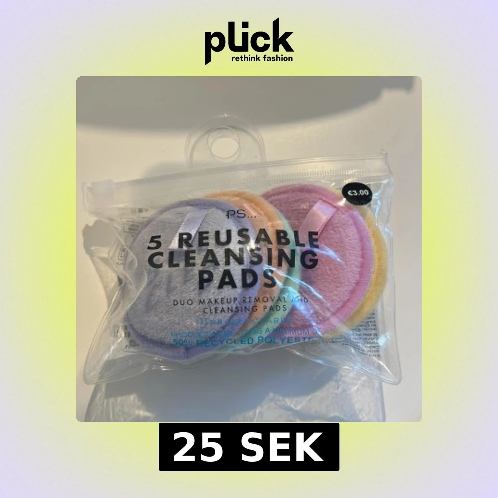 Säljer ett 5-pack återanvändbara rengöringspads i mjuk pastellfärgad polyester. Perfekta för att ta bort smink och rengöra ansiktet. Kommer i färgerna lila, rosa, orange och gul. Förpackningen är återförslutningsbar med dragkedja.