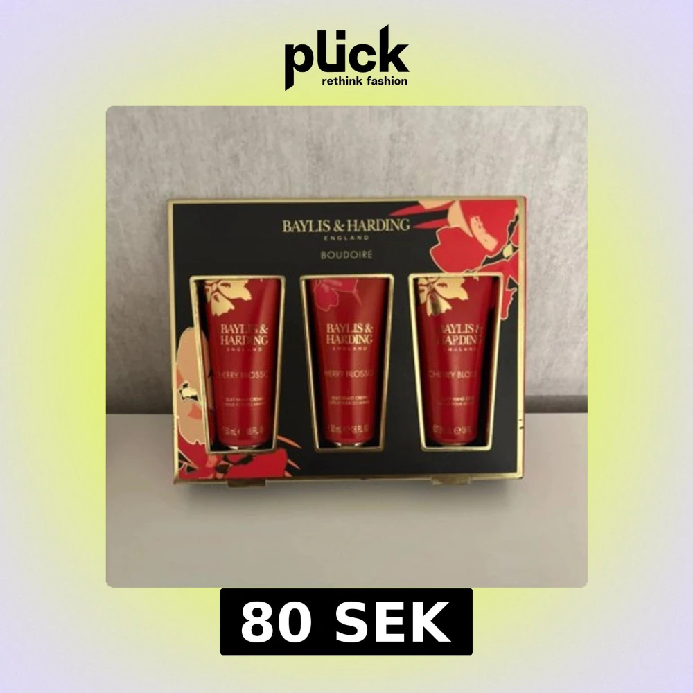 Lyxigt presentset med tre handkrämer från Baylis & Harding i serien Boudoire. Tuberna är röda med guldiga detaljer och har doft av cherry blossom. Varje tub innehåller 50 ml och har en elegant blommig design som känns modern och fräsch.