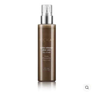 Golden shimmer glow mist, ger en fin solkysst färg, enkel att bara spraya på och är inte fläckig. Märket är Hickap