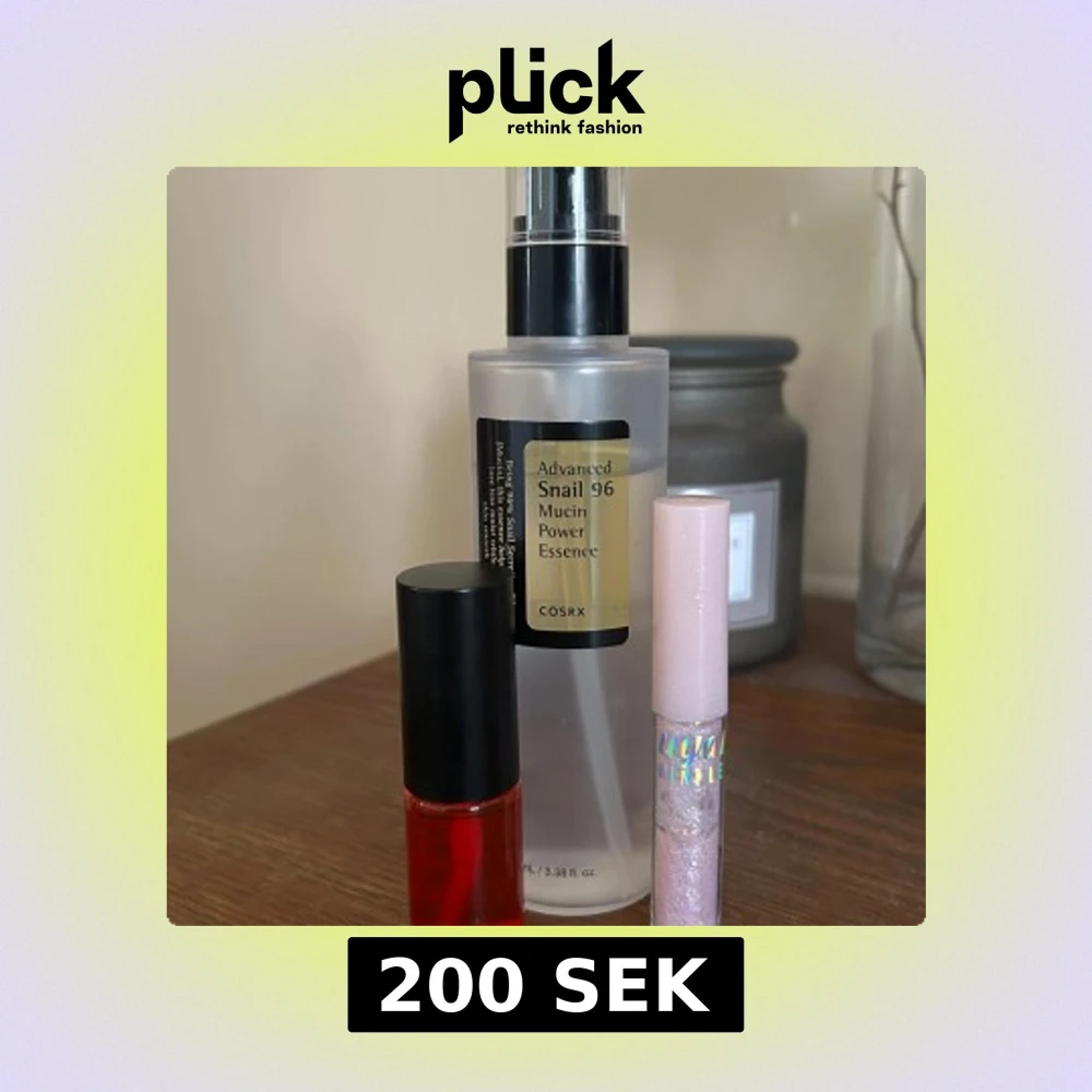 COSRX Advanced Snail 96 Mucin Power Essence, röd lip tint, och liquid glitter💕