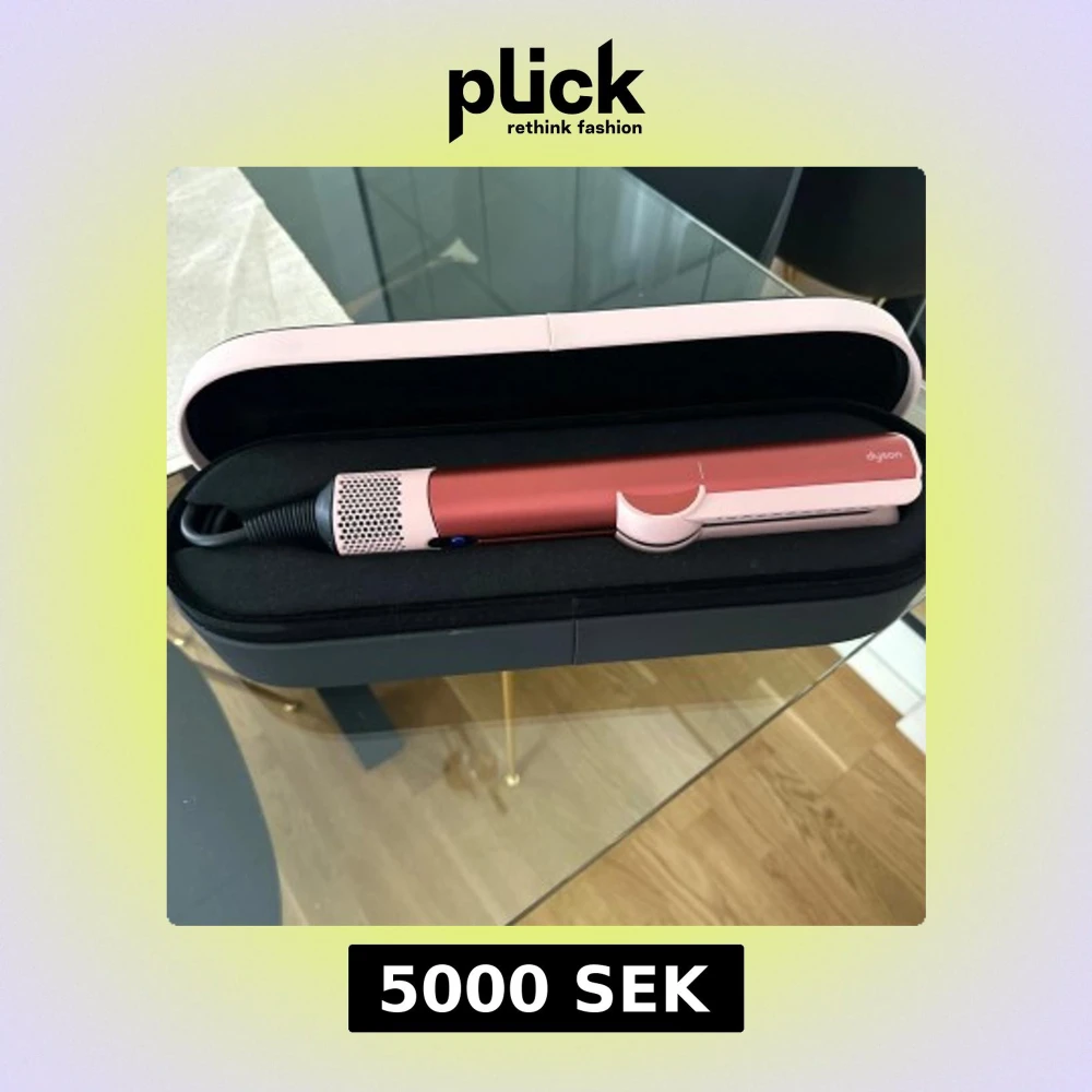Säljer en snygg Dyson hårstyler i metallic rött och ljusrosa med svart sladd. Kommer i ett stilrent fodral som skyddar verktyget. Perfekt för att fixa håret snabbt och enkelt med en lyxig känsla.