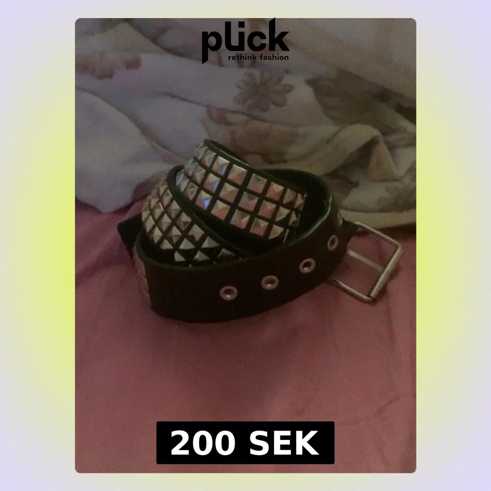 Säljer ett svart bälte med silvriga fyrkantiga nitar och metallspänne. Bältet har flera hål för justering och ger en edgy vibe till outfiten. Perfekt accessoar för dig som vill sticka ut.