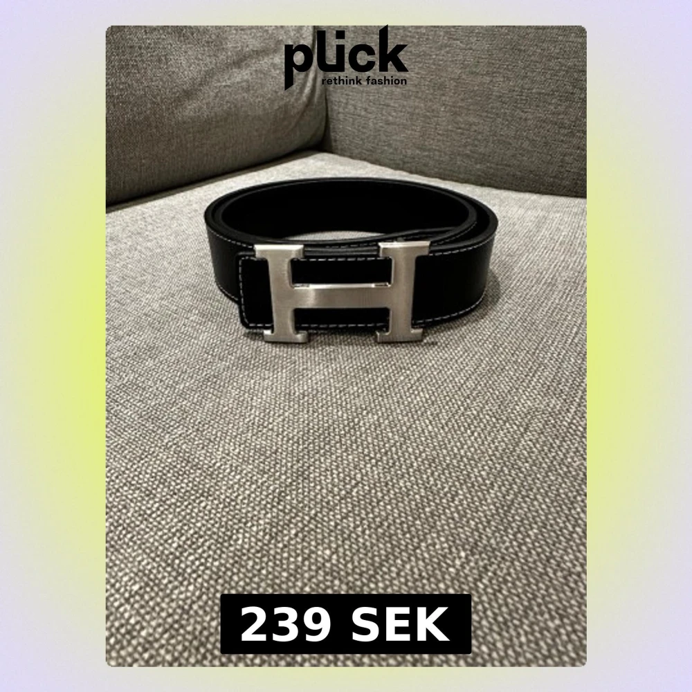 Snyggt svart bälte i läder med kontrastsömmar och ett stort, silverfärgat H-format metallspänne. Perfekt accessoar för att lyfta din outfit med en stilren och exklusiv touch. (Tillkommer även verktyg för att göra egna hål)