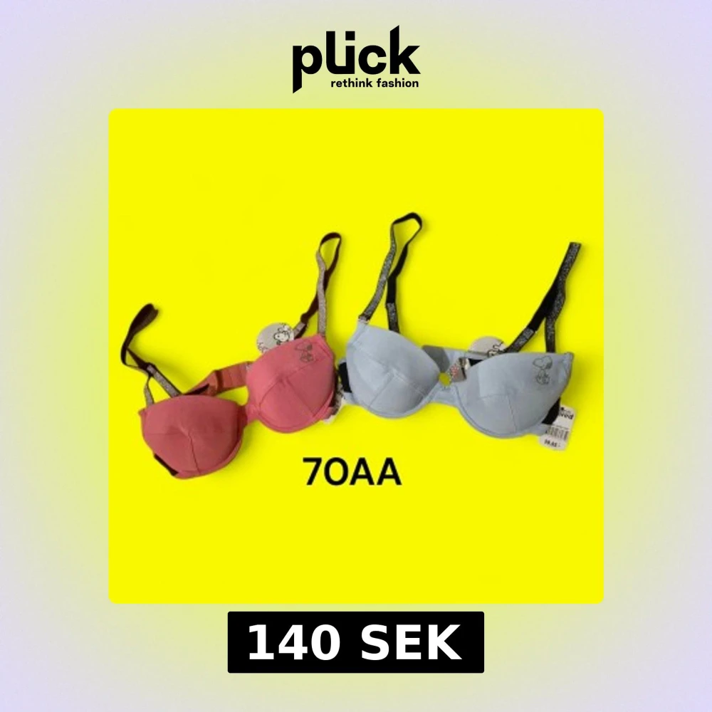 Säljer ett 2-pack bhar i storlek 70AA, en i rosa och en i ljusblå. Båda har justerbara axelband och lätt vadderade kupor (eller egentligen uttagbara kuddar) för extra komfort. Snygg enkel design utan spets eller extra detaljer. Snoopy-tryck på ena kupan. Perfekta för dig som vill ha en basic bh i fina färger. Varan är oanvänd och kommer från ett konkurslager från 2000-talet. Orginallappar kvar. Har fler annonser och bra bundlerabatt vid köp av flera.