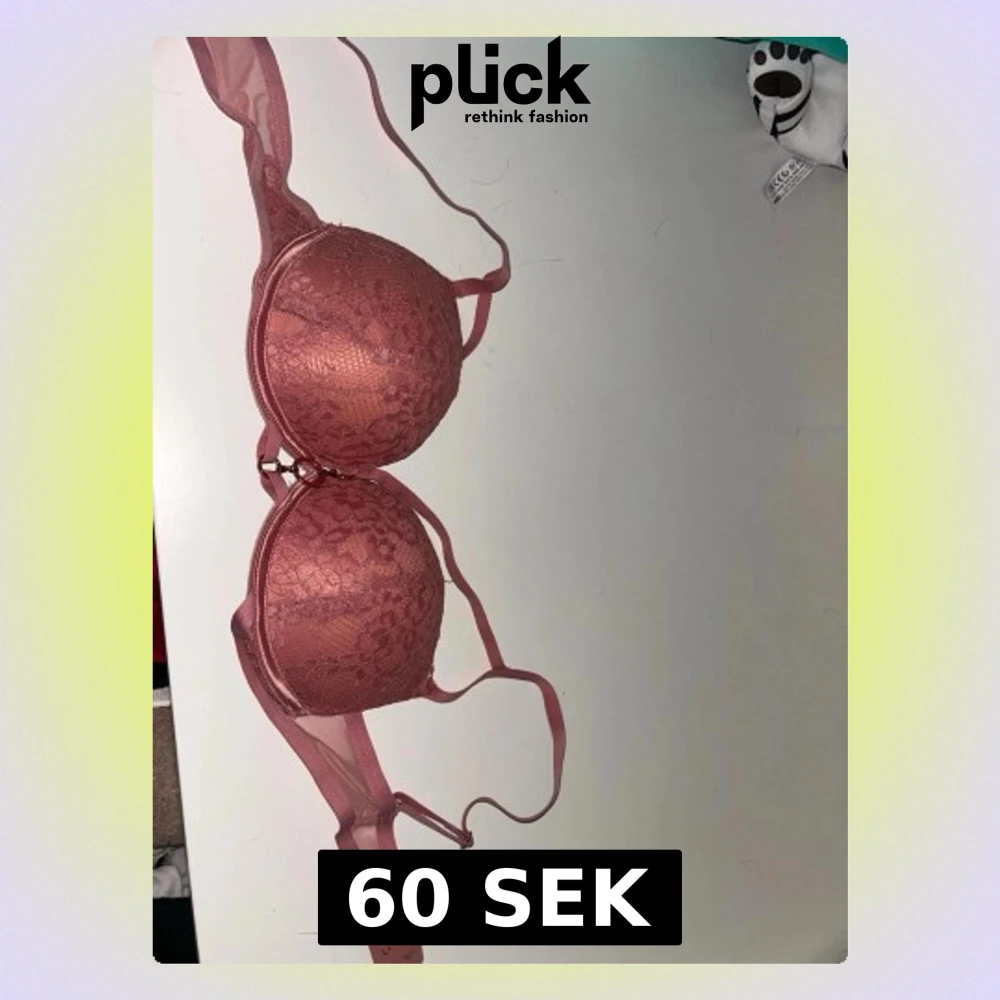 Snygg rosa push-up bh med vadderade kupor och spetsdetaljer. Bh:n har dekorativa ringar framtill mellan kuporna och justerbara axelband. Materialet är en kombination av spets och slät textil för en feminin look.