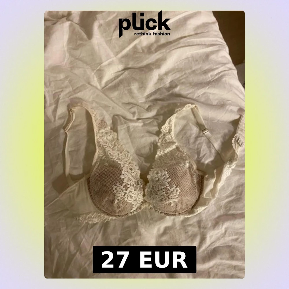 Säljer en elegant vit bh med vadderade kupor och vackra spetsdetaljer framtill och på axelbanden. Bh:n har justerbara axelband och hakknäppning bak. Materialet är en kombination av spets och mjuk textil för extra komfort.