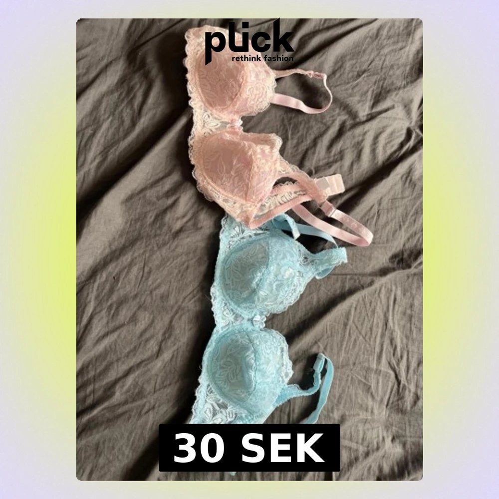 Säljer två bhar i pastellfärger, en ljusrosa och en ljusblå. Båda bharna har vacker spetsdetalj över hela kupan och justerbara axelband. Kuporna är lätt vadderade och har bygel för extra stöd. Perfekta för dig som gillar romantisk och feminin stil.