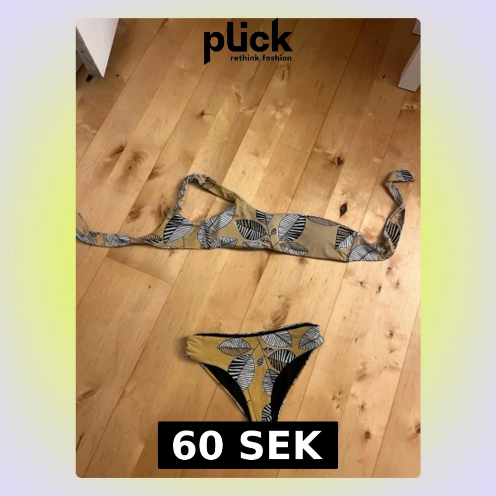 Överdelen har långa knytband och en axel, medan underdelen är klassisk med samma mönster. Perfekt för stranden eller poolen! Överdelen är lite solblekt.