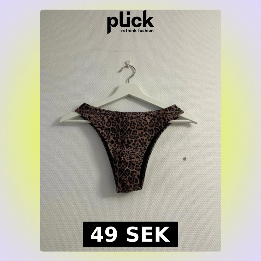 Säljer en snygg bikiniunderdel med leopardmönster i bruna och svarta toner. Modellen har hög midja och skär upp över höfterna för en trendig look. Perfekt för dig som vill sticka ut på stranden eller vid poolen.