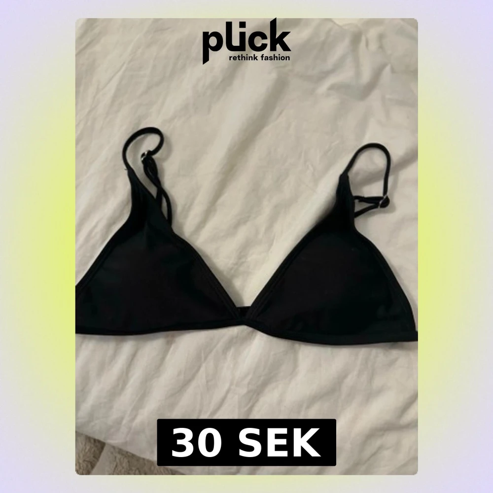 En enkel och stilren svart trekantsbikinitopp med tunna axelband och justerbar knytning i ryggen. Perfekt för lata dagar på stranden eller vid poolen. Klassisk modell som passar till det mesta.