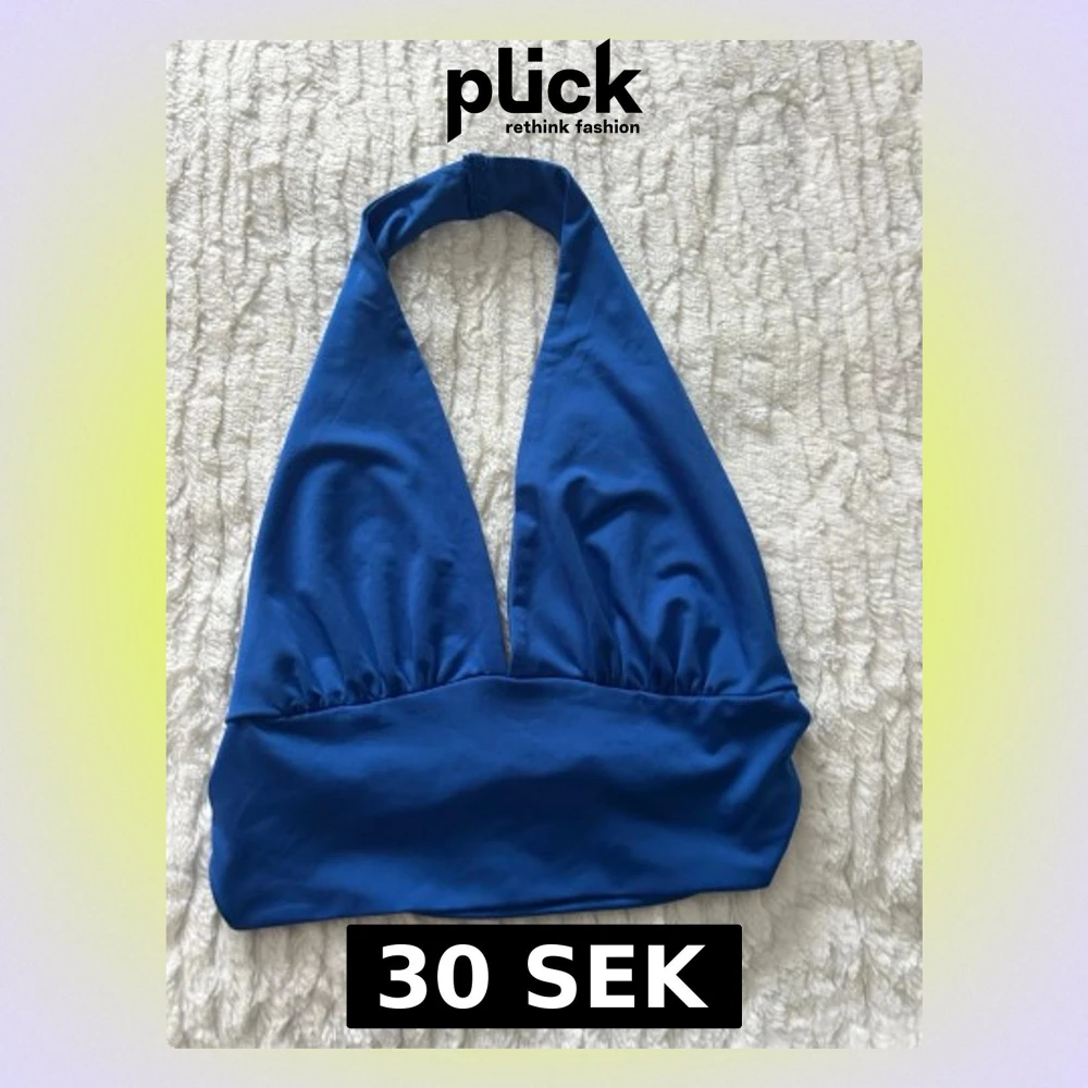 Snygg blå topp Toppens material känns mjukt och stretchigt, . Enkel och stilren design utan mönster eller extra detaljer.
