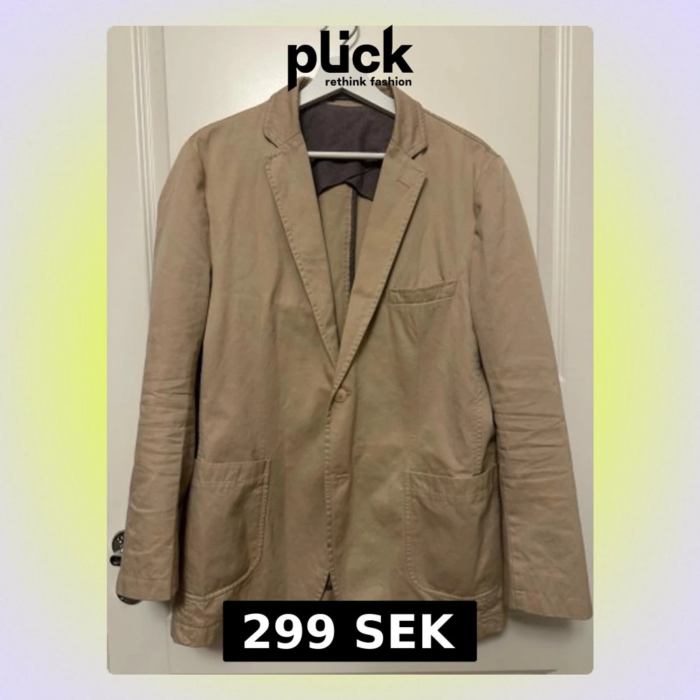 Beige Boomerang kavaj strl 52. Bomull, Polyester Ärmlängd (cm) 61 , Axelbredd (cm) 47 Fläckig/smutsig (se sista bilderna)