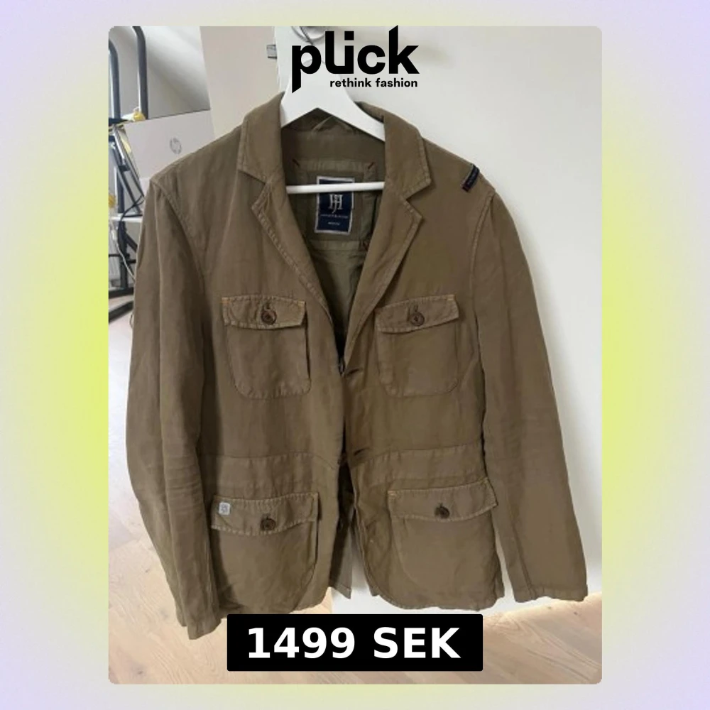 Snygg olivgrön kavaj från Henry Choice med fyra framfickor och klassisk krage. Kavajen har dekorativa knappar och patchdetalj på insidan. Tillverkad i ett mjukt bomullstyg som ger en avslappnad look. Pris 1499kr, passar M/L