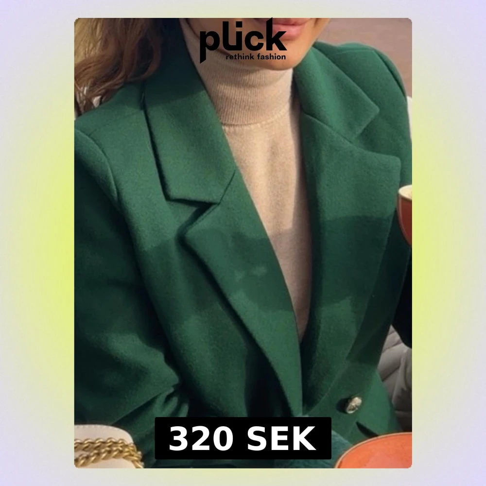 Stilren grön kavaj med breda slag och två knappar framtill. Klassisk passform och elegant design, perfekt att matcha med polotröja. Kavajen har en djup grön färg och är tillverkad i ett mjukt tyg som ger en lyxig känsla.