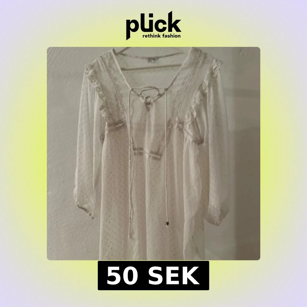 Vit prickig lång blus med volang