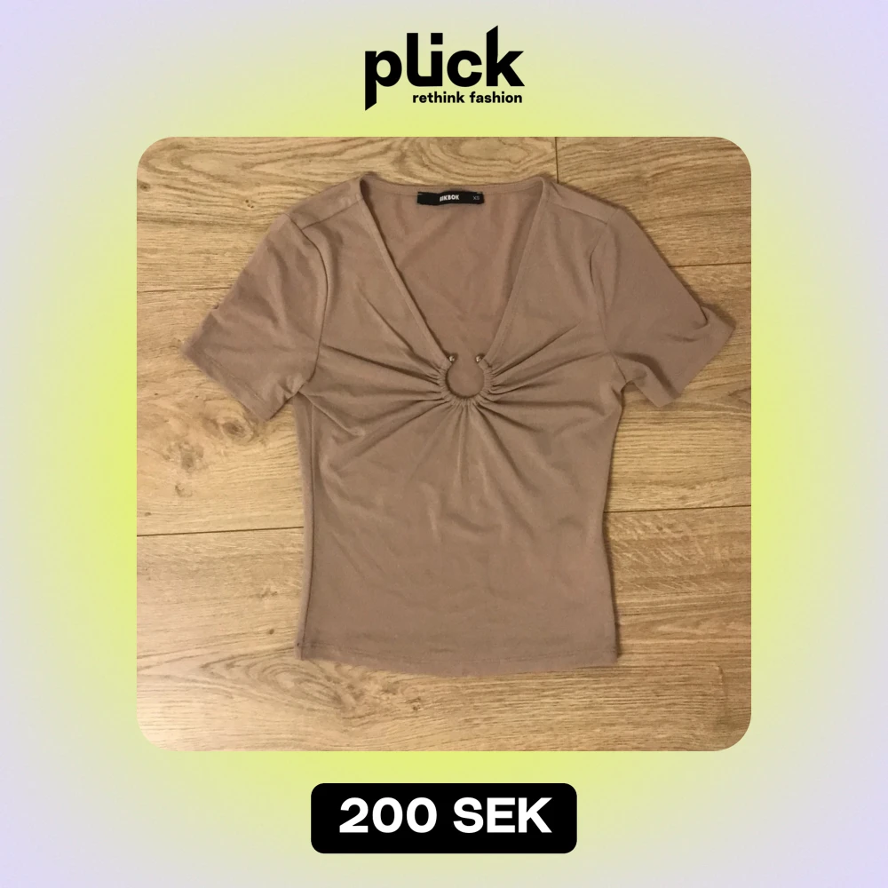 En oanvänd tröja från bikbok i storlek xs. Den är beige, v-ringad med en metallring i silver. Kortärmad. Pris kan diskuteras.