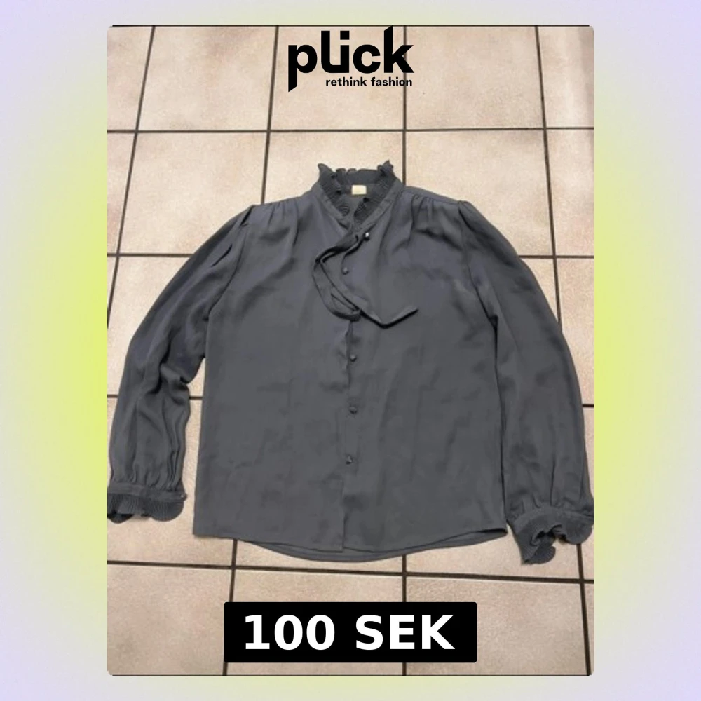 Mörkgrå blus med volangkrage storlek S/M