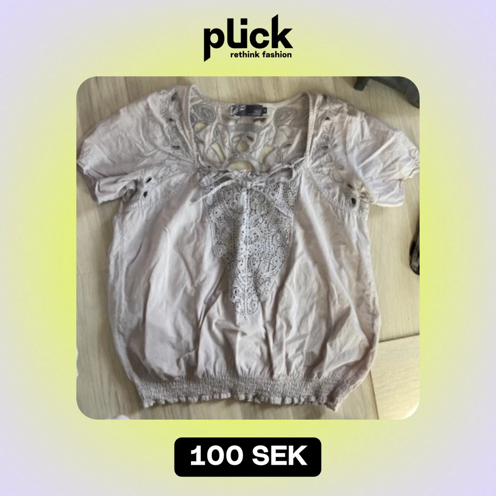 Jätte fin blus med massa blommiga mönster. Snören som man knyter till rosett 🎀 längst fram. Fina detaljer på bakdelen också💗 Skönt material! Nyttskick!