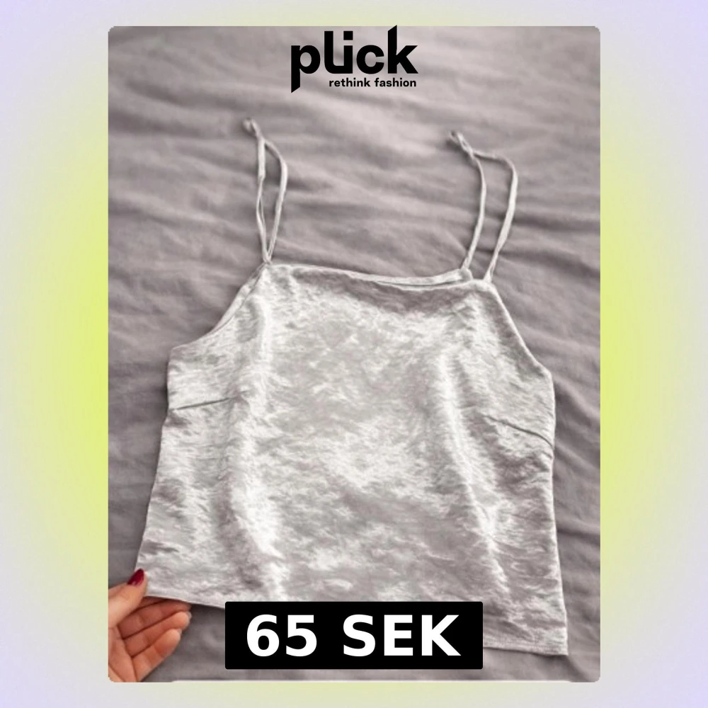 Silvrigt satinlinne i storlek 38. Glansigt material med tunna axelband, faller superfint. Snyggt både till vardag och fest. ✔️ Mycket gott skick ✔️ Mjukt och följsamt material Perfekt statement-plagg 💿✨