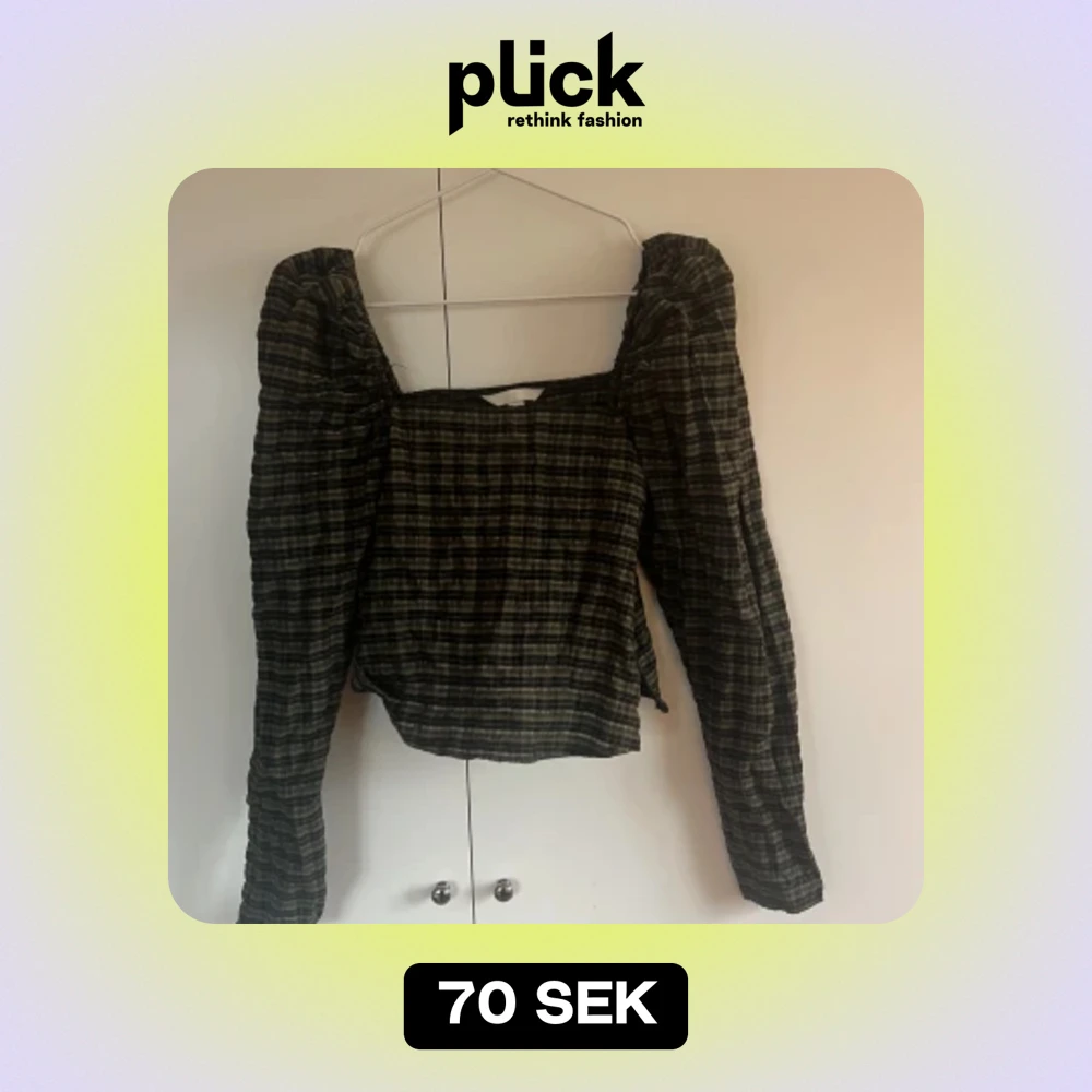 Rutig blus från hm i storlek XS med puffärm. Fint skick men behöver strykas.