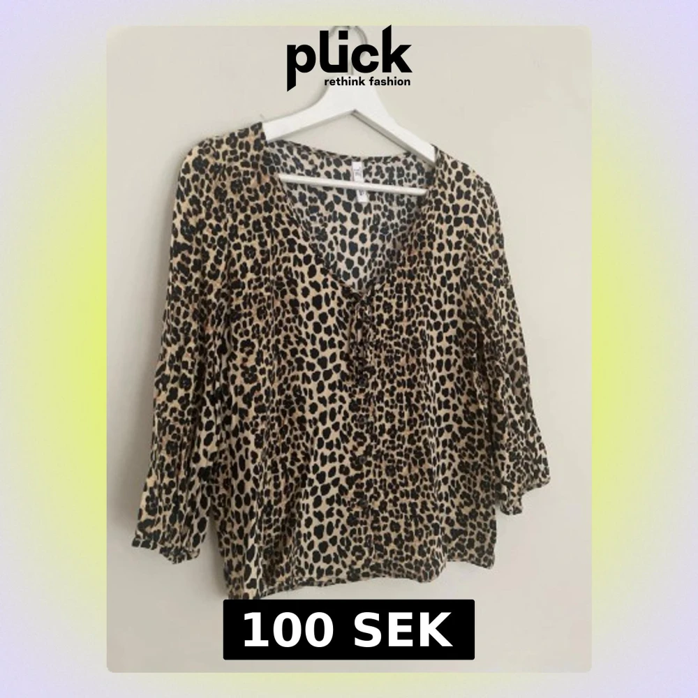 Snygg blus från Mango med leopardmönster i beige och svart. Blusen har v-ringning med knytning framtill och trekvartsärmar. Tillverkad i ett lätt och luftigt material som ger en avslappnad look.