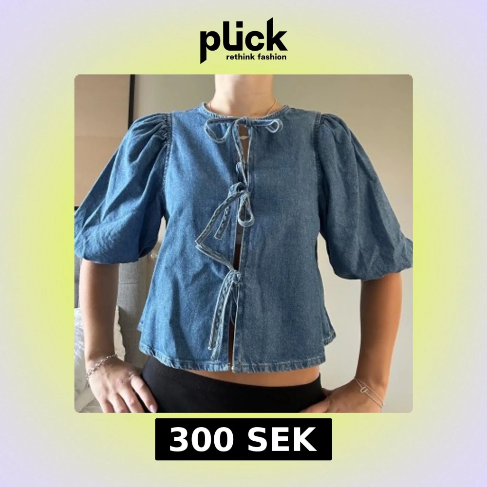 Cool jeanstopp med puffärm och knyt framtill. Helt ny och aldrig använd, dock är lappen avtagen. Tryck inte på KÖP DIREKT utan skriv privat om du är intresserad! 💛