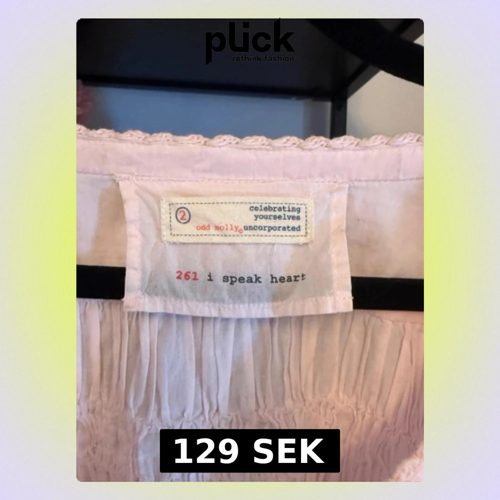 Supersöt ljusrosa blus från Odd Molly med smockdetaljer över bysten och volangkant vid ärmslut. Blusen har knytband framtill