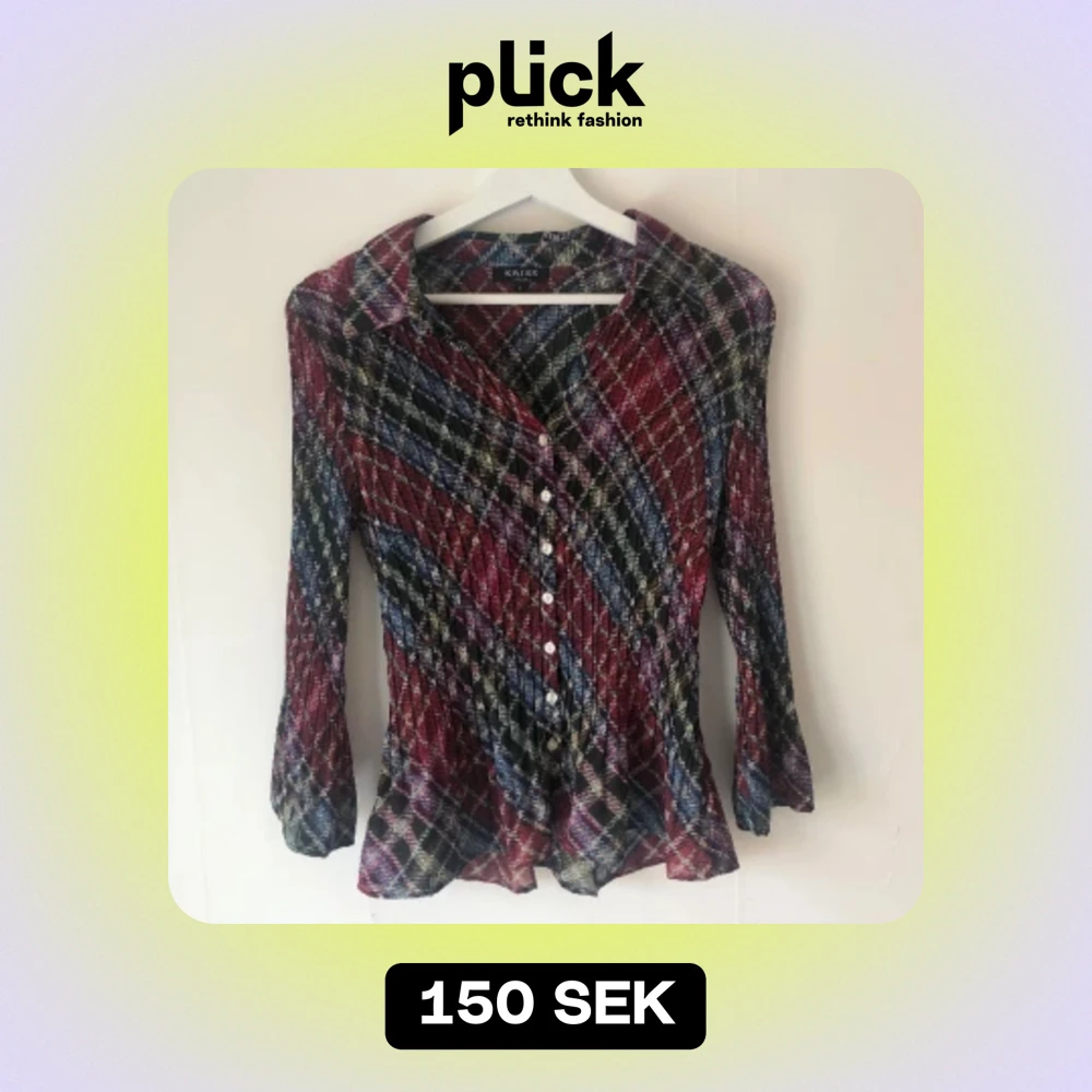 Rutig tunn blus med trumpetärmar/trumpetformad nedtill. Står storlek L men skulle säga att den passar storlek S❤️