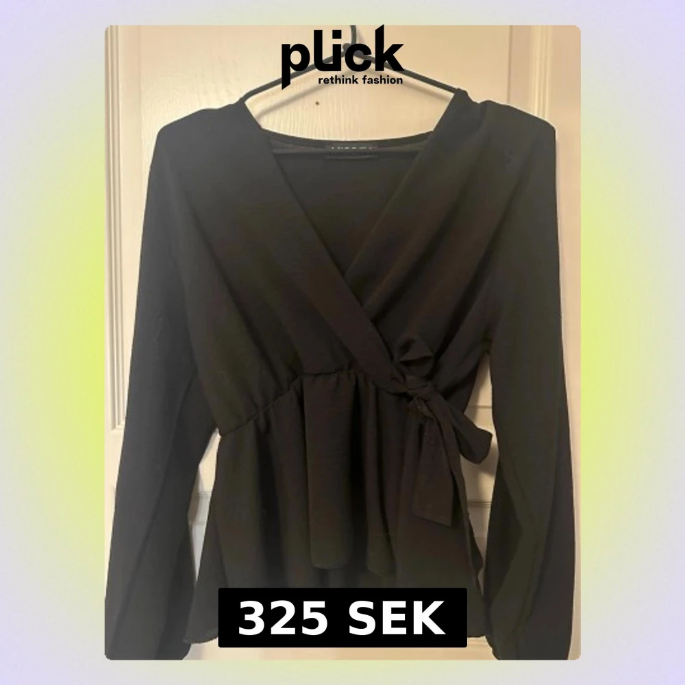 Snygg svart omlottblus från Missay med långa ärmar och knyt i sidan. Toppen har en v-ringad design och ett lätt utsvängt fall nedtill som ger en snygg siluett. Perfekt att styla med jeans!