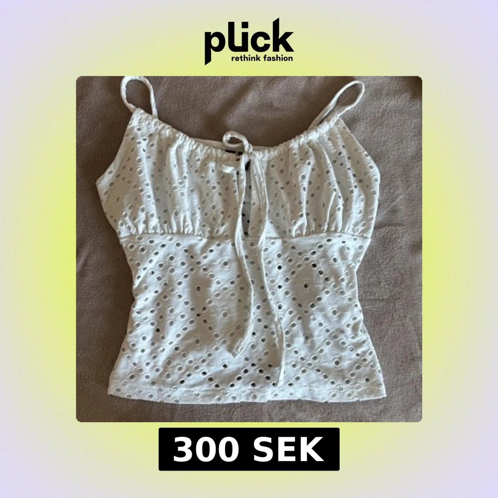 Supersöt vit linnetopp med hålmönster och smala axelband. Toppen har knyt fram och en lätt rynkad överdel som ger en romantisk vibe. Perfekt för varma dagar och enkel att styla med jeans eller kjol.💗