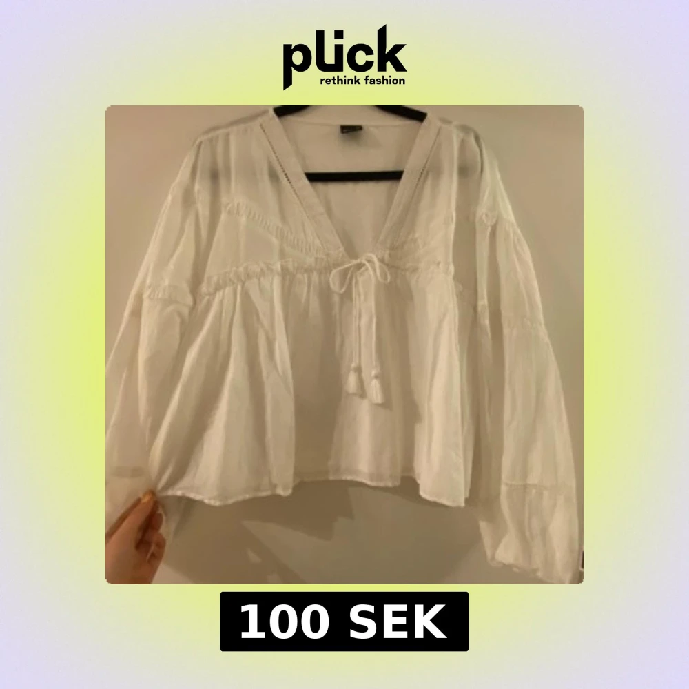 Supersöt blus från Gina tricot. Är lite kortare i modellen så skulle kategorisera denna som M-L.