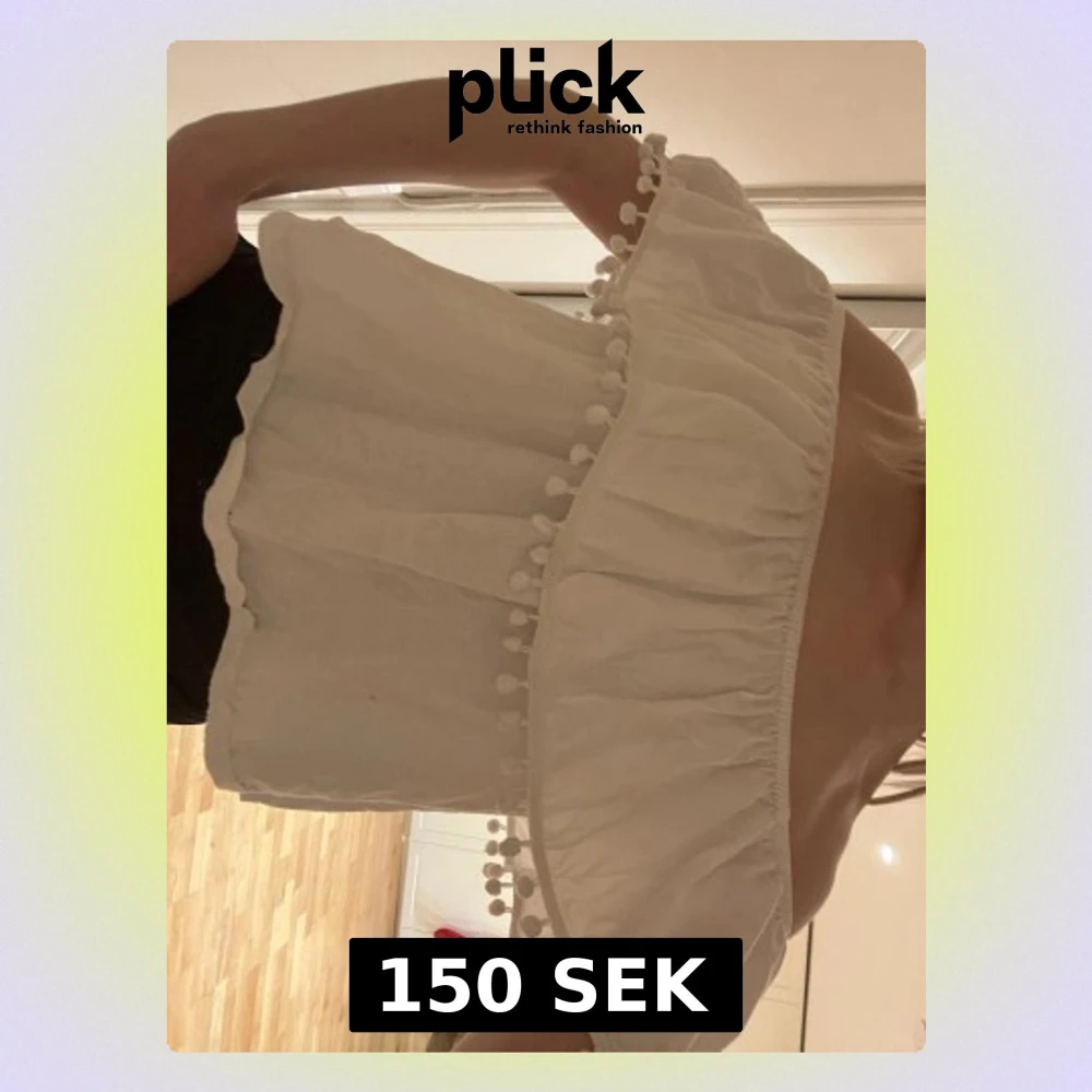 Jättesöt vit volangtopp med snygga detaljer! Off shoulder och lite croppad💞Ryggen ser exakt likadan ut som framsidan. Strlk 36