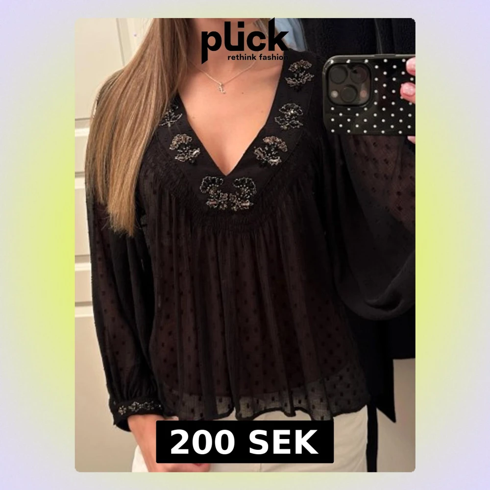 Så snygg svart lite mesh aktig blus med detaljer i V-ringning