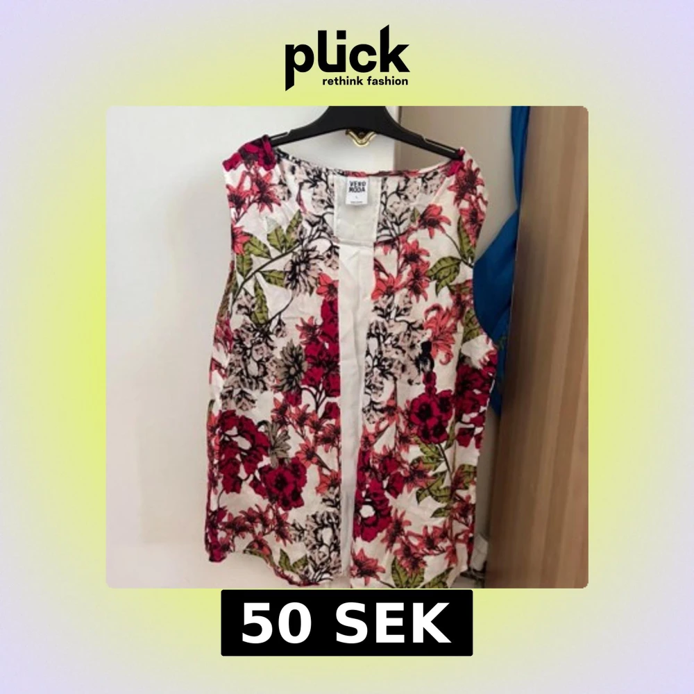 Snygg väst från Vero Moda i storlek L med blommigt mönster i rött, rosa, grönt och svart på vit botten. Västen är ärmlös och har en rak, lite loose passform. Perfekt för att liva upp en enkel outfit med färg och mönster.