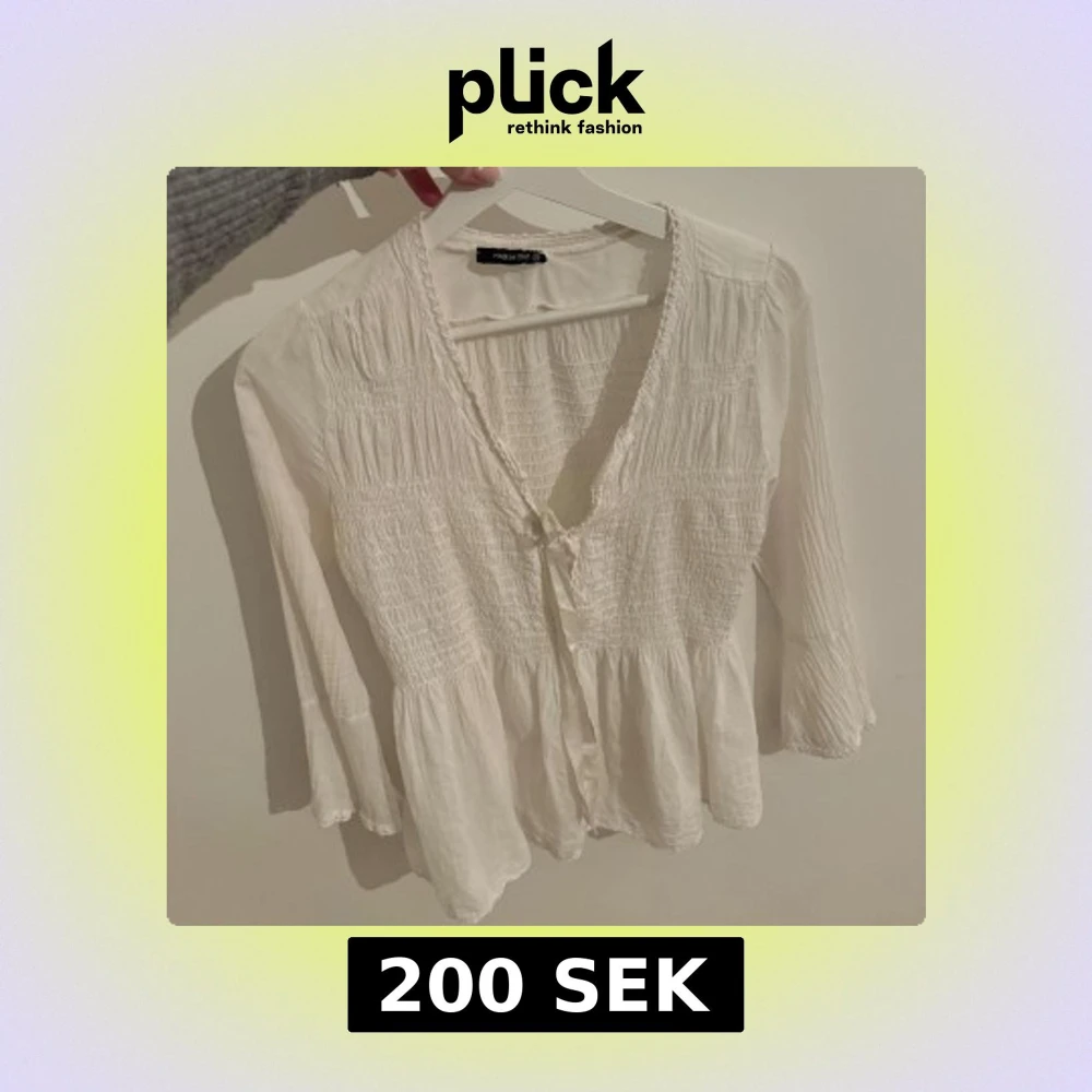 Vit blus/topp med snörning på framsidan. Storlek xs men passar även s skulle jag säga